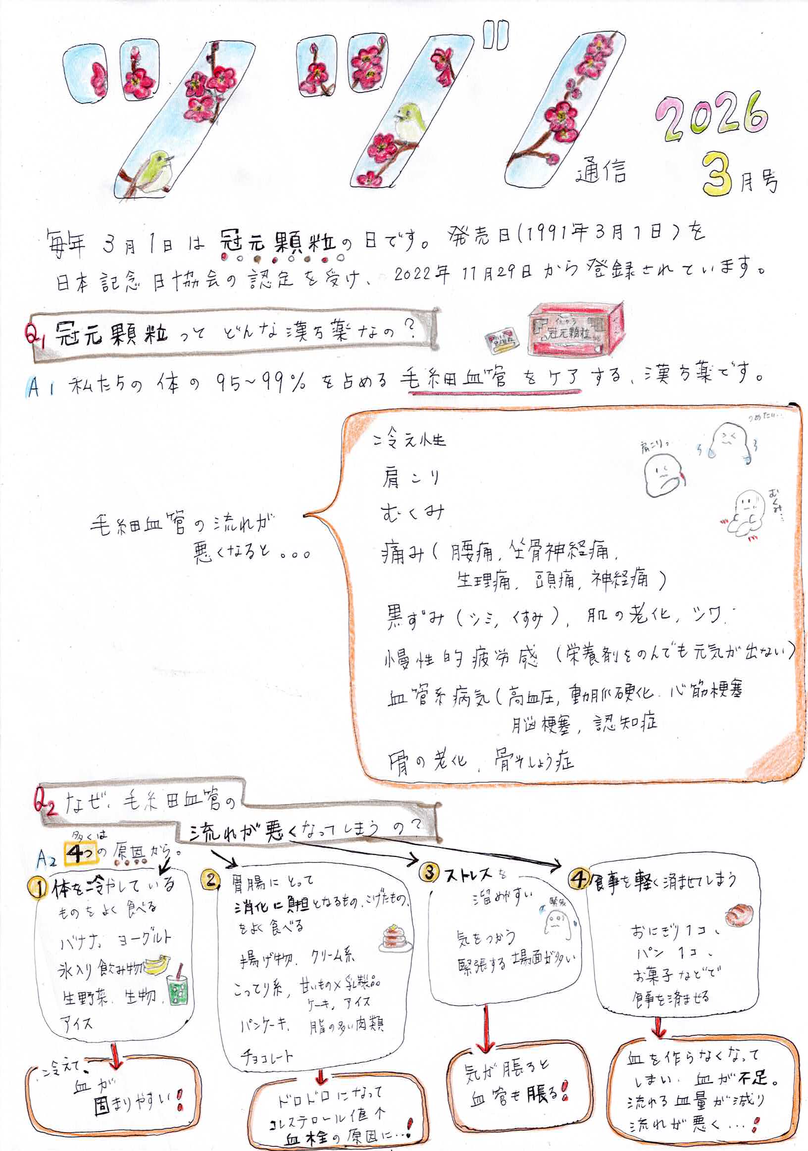 3月のツヅノ通信は『 冠元顆粒 』についてです。